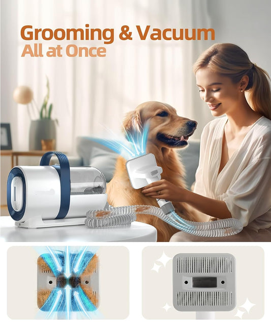 Dog Hair Vacuum&Dog Grooming Kit with 7 Pet Grooming Tools for Shedding Pet Hair